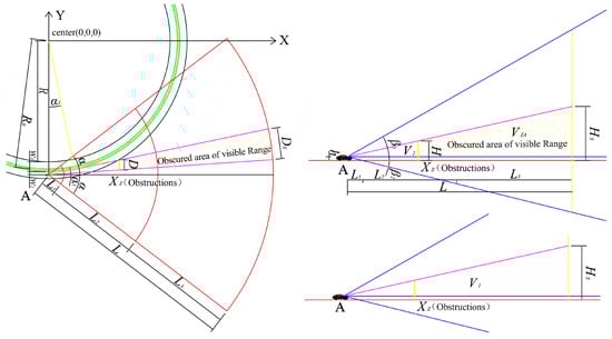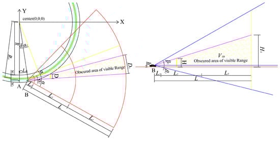 If the width D and height H of the occluder are given, because in the process of vehicle motion, the occlusion and volume of the occluder to the driver change, they are related to the driving speed of the vehicle, the radius of the circular curve, and the coordinates of the initial point A of the vehicle. They are constantly changing.