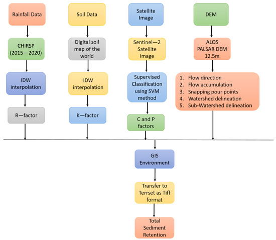 Flowchart showing conceptual framework to determine the sediment retention in TerrSet Model.