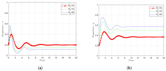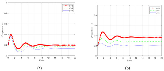 Proposition 4 demonstrates that, when the premium is sufficiently high, there is an asymptotically stable equilibrium point . This means that the dynamic premium and farmers’ punishment policy can also lead to an effective green market.
