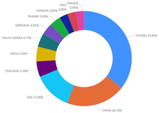 Figure 1 illustrates the significant research and development efforts that have been dedicated to process planning and scheduling in the context of distributed manufacturing systems. The use of blockchain-based methods has also been explored in this context. The figure displays the volume of work conducted in the last 15 years across different countries using the keywords: blockchain technology, process planning and scheduling, and manufacturing management. Additionally, Figure 2 provides a more detailed view of the contributions made by different countries in this field.