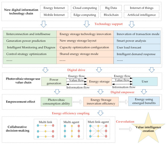 It is observed that digital technology can empower domestic green development [36]. The wider application of new information technology to the photovoltaic–storage–use value chain could therefore create a path towards value intelligence creation.