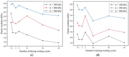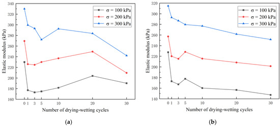 - With an increase in FTCs, the elastic modulus of the loess with various mica contents dropped to diverse degrees. With the increase in the mica content, the elastic modulus of the loess with different mica contents decreased. With an increase in the confining pressure, the elastic modulus of the loess with various mica contents rose.