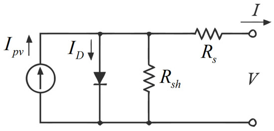 The mathematical model of a PV cell is required to predict the behavior of solar PV cell/module/array under varying environmental conditions. Mathematical modeling of a PV cell is an ongoing area of research, where the researchers have developed multiple models (single diode, double diode, and triple diode). One, two, and three diode models have been designed so far but the most used model of PV cell is the single diode due to its simplicity [25]. However, the double-diode triple diode models of PV cell are more accurate compared to the single-diode model, but the difference in accuracy is quite small. The basic model of a PV cell is displayed in Figure 1.