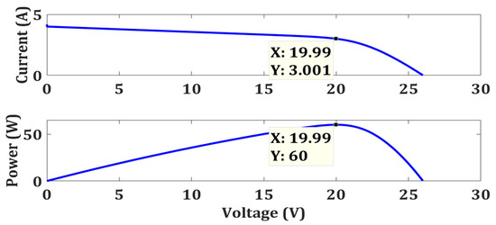 In the first condition, both PV modules collect 1000 W/m2, and the characteristic curve will generate a single MPP as shown in Figure 6. Tracking a single MPP is not a big deal. Here MPP occurs at 19.99 V, 3.001 A, and 60 Ws.