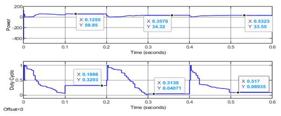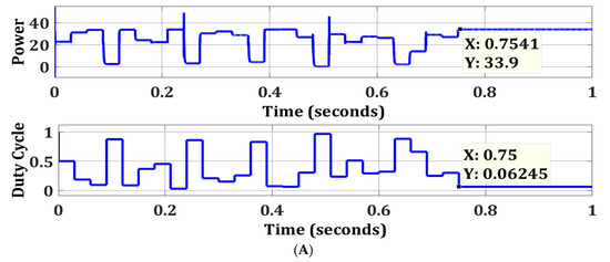 In summary, the proposed algorithm observes the current state of the solar PV system (amperes, voltage, and power) and initiates an MPP tracking process. Afterward, it applies multiple solutions to the system and records the system’s response for each solution. After observing the response of the system, the algorithm picks the best solution and applies it to the system.