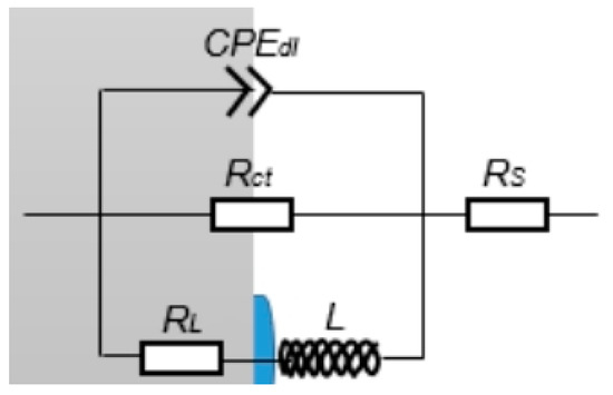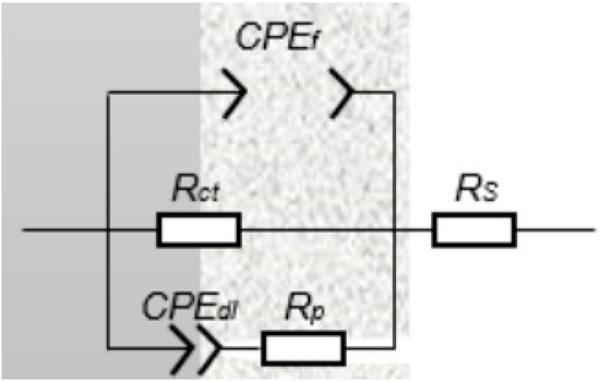 Equivalent circuit diagram of the electrochemical impedance spectrum of the J55 steel at pH = 10.