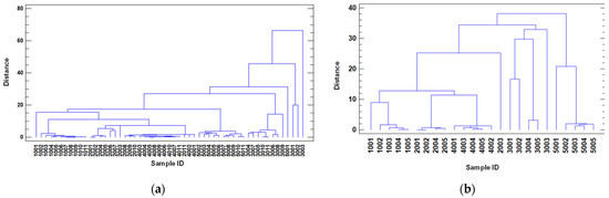 Dendrograms with the selected data: (a) with all the data and (b) only with the data of the initial 5 h.