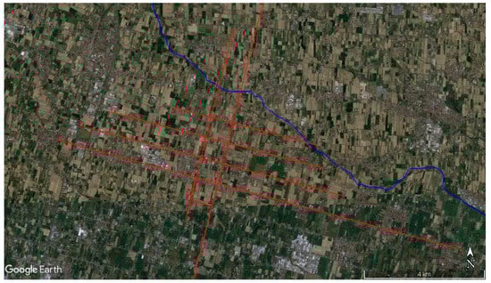 In a second analysis, the possible role of topography in the layout of the axes of a centuriation was explored, since in areas with abrupt orography or that are appreciably affected by water flows and floods, the grids would have inevitably been drawn secundum natura. In particular, and as is attested by many ancient and contemporary authors, water management was a primary feature to attend to at the time of designing and dividing lands—for example, for canalization and irrigation projects required for agriculture and pastures—since it was essential for their administration and productive use. Examples where this seems to be prioritized are mentioned for some centuriations along the Via Aemilia [36] as well as in towns developed in former marshy areas, such as Capua [37] or Acerrae [38].