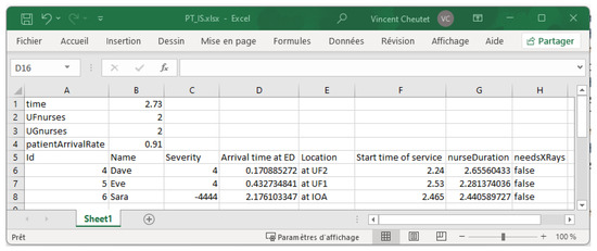 “What-If” analyses: The possibility to dynamically change decision variables in the proposed digital system is not yet implemented. More precisely, it is possible to change them (for instance, in AnyLogic experiments of the “Parameter variation” and “Optimisation” type), but they will be constant during a simulation run. Nevertheless, the dynamic nature of the Synchronised DT makes it more interesting to make decisions such as “Change this parameter at this time” (e.g., “keep the same number of UG nurses as in the Excel file until hh:mm, next remove one nurse” in order to study the consequence on the ED if Alice leaves at hh:mm).