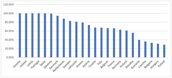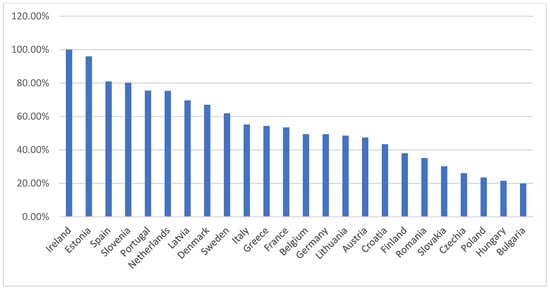 The conducted research allowed us to verify the research hypotheses put forward in the literature review. The level of countries’ differentiation in terms of energy efficiency was measured by the coefficient of variation, which, in 2013, amounted to 34.05%. Its value indicates the average diversity of countries in terms of the efficiency of transforming inputs into outputs. In 2020, the value of the coefficient of variation measuring this diversity had increased and amounted to 42.15%. It means there was an increase in differences between countries in terms of energy efficiency of 8.1 percentage points. In 2013, five countries were fully efficient in converting inputs into outputs. These were: Estonia, Ireland, Latvia, Portugal and Spain. Among energy-efficient countries, there were both “old” and “new” member states. In 2020, the number of fully energy-efficient countries fell to one. This country was Ireland, representing the “old” member states.