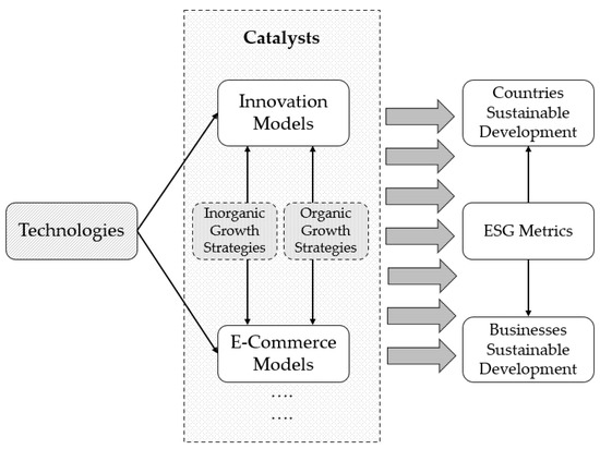 Sustainable development and environmental, social, and governance (ESG) metrics have been extensively investigated. Similarly, innovation has often been considered the main trigger for the e-commerce models’ factor.