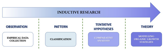 The adopted approach follows a consistent research strategy based on an inductive approach that starts from the empirical observation of the data collected to formulate a specific model that can be further generalised to achieve organic growth in the e-commerce industry. Therefore, it perfectly matches the main aims of the research to prepare a benchmarking framework valuable for decision-making processes.