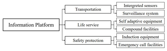 The guidelines propose that traffic scheduling should be carried out based on the spatial–temporal characteristics of human and vehicle flows and should be supported by an intelligent cloud computing platform. As to convenient living, the guidelines point out that technologies such as oblique photography and portrait technology should be used to collect basic urban information (Figure 6). The guidelines also promote the design of smart electronic screens, and they advocate a combined functional structure for urban furniture to improve life services. In consideration of vulnerable people, high-density coverage sensors were proposed so as to optimize information dissemination channels.