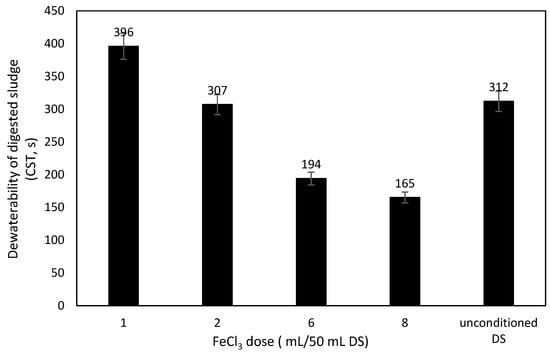 Effect of FeCl3 dose on dewaterability of digested sludge.