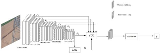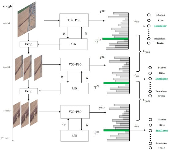 In Figure 2, continuous hierarchical sampling of the input image is carried out, and the details of the image are continuously refined. is the output of the convolution model after t pooling processing; N is the attention region collected from the extracted feature information and it is taken as the next level of classification and sampling. is a classification marker for the output of the m layer; is the possibility of accurate classification of the layer; is a missing classification module; is the loss of a local sampling component. The details are shown in Figure 1.