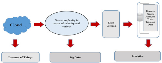 Off-line analysis is used when a quick response is not required [37]. For example, many Internet enterprises use Hadoop-driven offline analytics as explained in Zahid et al. [38]. There are other approaches for big data analytics such as memory-level analytics, business intelligence analysis, and massive analysis, which are defined based on the size of data in comparison with the allocated memory based on the application, which is explained in Refs. [39,40], respectively. The relationship between IoT and big data analytics is explained in Figure 2.
