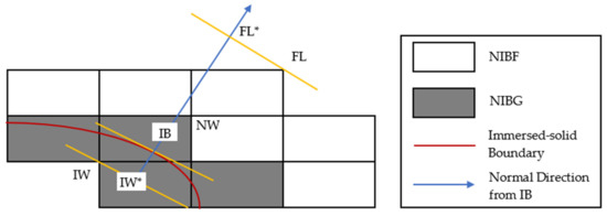 where superscript F and IS denote the fluid and immersed solid, respectively. The momentum source can be calculated based on the tangential-force velocity (UNWF)tan and the wall-normal velocity (UIBIS)nm: