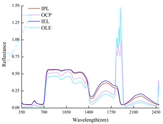 Original spectrogram (IPL: indoor spectrum of pepper leaves; OCP: outdoor canopy spectra of pepper; IEL: indoor spectrum of eggplant leaves; OLE: outdoor canopy spectra of eggplant).