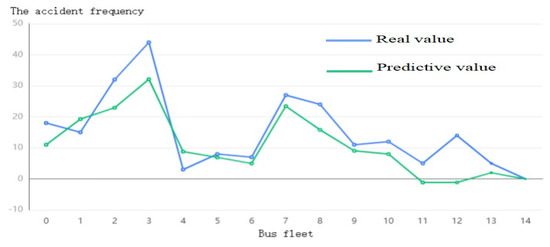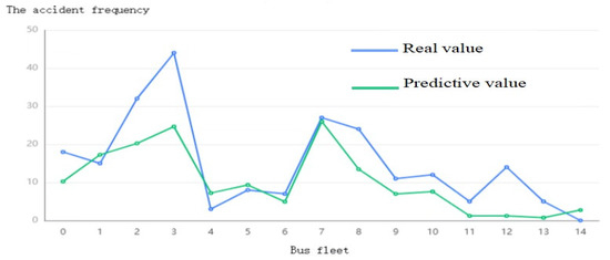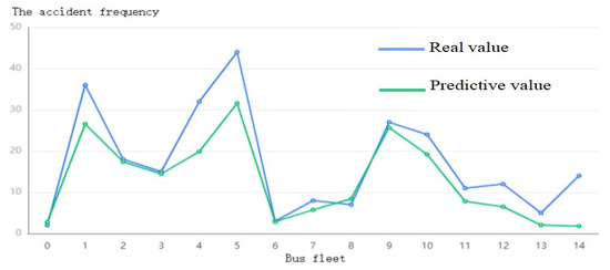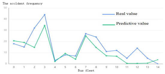 To investigate the effect of service violations on the predictive effect of the XGBoost model, only safety violations were used in the modeling. The model employed a total of five safety violation types, including bus GPS speeding violation, bus dangerous driving behavior, bus safety operation violation, bus safety violation, and bus general road access violation, as input variables, and the number of fleet traffic accidents as the dependent variable, with 70% of the data serving as the training set. Table 11 displays the final output model evaluation results.