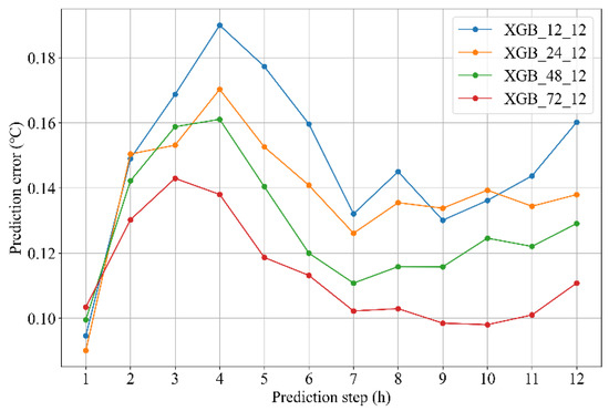 Prediction error in next 12 h under different input steps of XGBoost.