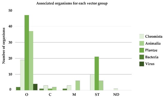 The overall data on main vector groups and associated organisms are shown in Figure 2a and Figure 2b, respectively.