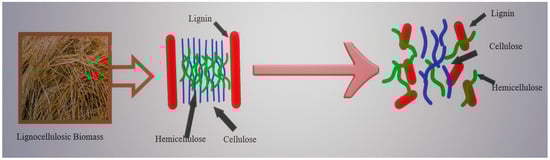 The fundamental obstacle to the generation of biofuels seems to be the resistant and crystalline structure of plant biomass [36]. Enzyme interaction with cellulose is necessary for enzymatic hydrolysis, however, cellulose’s crystalline structure makes enzymatic attacks difficult. The lignin and hemicellulose matrices are another obstacle because they operate as physical barriers that reduce the accessibility of activated cellulose to enzymes. Additionally, lignin reduces the effectiveness of enzymes by binding cellulase [37]. Therefore, a pretreatment technique is needed to soften the crystalline structure of plant biomass before enzymatic hydrolysis [38]. The pretreatment process alters the structure and composition of the biomass and increases the surface area of the cellulose, making it more porous and more accessible for enzymatic hydrolysis [39,40,41].