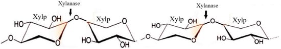 In addition to xylanase, mannans, and heteromannanas are additional polysaccharides that are found in the hemicellulose of plant cell walls. D-mannose, a six-carbon sugar, makes up the majority of mannan, but because plant mannans have a complex and heterogeneous structure, it takes a combination of endo-1,4-β-mannanases, exo-mannosidases, and other enzymes to completely break them down [79]. These enzymes can also remove the side chain sugars that are present at various locations on mannans. The following enzymes are involved in the hydrolysis of different hemicellulosic structures. Xylan degradation is carried out by three different types of xylanases [80].