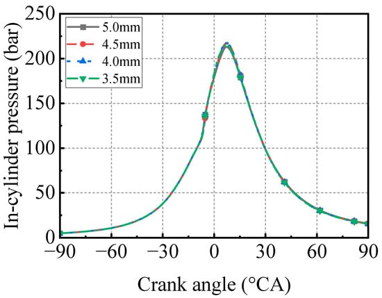 Comparison of in-cylinder pressure with various pilot injection timings.