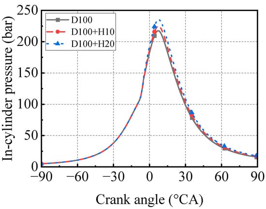 Comparison of in-cylinder pressure at hydrogen additional enrichment.