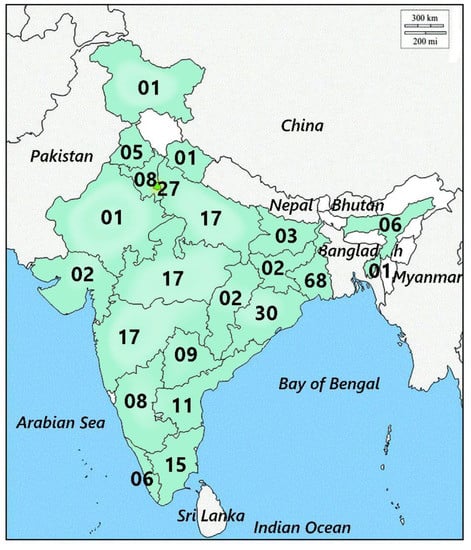 The respondents for the primary survey in this research were from 21 out of 28 states and 1 out of 8 union territories in India. The compositions of the respondents across the states (in alphabetical order) are as follows: Andhra Pradesh (11 nos.), Assam (6 nos.), Bihar (3 nos.), Chhattisgarh (2 nos.), Gujarat (2 nos.), Haryana (8 nos.), Jammu and Kashmir (1 no.), Jharkhand (2 nos.), Karnataka (8 nos.), Kerala (6 nos.), Madhya Pradesh (17 nos.), Maharashtra (17 nos.), Odisha (30 nos.), Punjab (5 nos.), Rajasthan (1 no.), Tamil Nadu (15 nos.), Telangana (9 nos.), Tripura (1 no.), Uttar Pradesh (17 nos.), Uttarakhand (1 no.), and West Bengal (68 nos.). In addition to this, 27 respondents were from the union territory of the National Capital Territory (or NCT) of Delhi. Figure 3 shows the distribution of the respondents across India.
