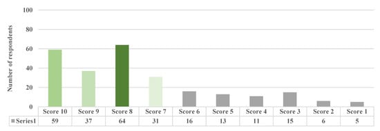 More than 74% of the respondents allocated a score of 7 or more when the respondents were asked to rate the impact of universal design on Indian urban quality of life on a scale of 1–10 (1 being least significant and 10 being most significant). Figure 5 shows the distribution of the respondents regarding the impact of universal design on urban quality of life.
