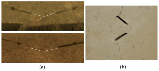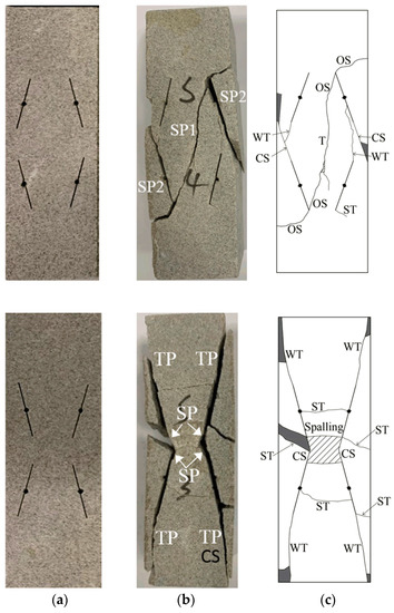 - Yin, P.; Wong, R.H.C.; Chau, K.T. Coalescence of two parallel pre-existing surface cracks in granite. Int. J. Rock Mech. Min. Sci. 2014, 68, 66–84. [Google Scholar] [CrossRef]