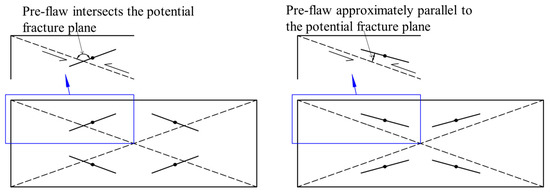 - Generally, the loading condition dominates the fracture tendency of rock macroscopically, while the geometric setting of defects significantly affects the regional fracturing behavior and failure mode locally. Specifically, the pre-flaw has a guiding effect on the development of fracture, which results in the deviation and deformation of shear cracks.