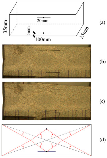 - Wong, R.; Chau, K.T. Crack coalescence in a rock-like material containing two cracks. Int. J. Rock Mech. Min. Sci. 1998, 35, 147–164. [Google Scholar] [CrossRef]