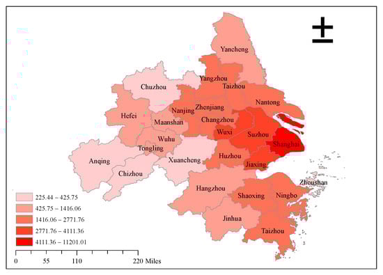In China, the YRDUA has the strongest innovation capability, the highest level of openness and the greatest economic development. It plays a decisive role in national modernization construction, and its regional connectivity and policy synergy must be improved further. Therefore, exploring the spatial correlation of energy consumption in the YRDUA is conducive to the in-depth implementation of the regional coordinated development strategy, leading the Yangtze River Economic Belt to coordinate energy conservation. The geographical distribution of the YRDUA in China is shown in Figure 1.