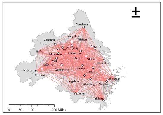 As shown in Table 2, in the network in 2005, 2008, 2011 and 2014, the change range of the out degree of 26 cities was smaller than that of the in degree, and the out degree of many cities in the four years was 6 or more. During the selected sample study years, the cities whose out degrees were greater than the annual average were Nanjing, Chuzhou, Hefei, Yancheng, Taizhou, Changzhou, Jinhua, Shanghai and Hangzhou. Among them, Nanjing ranked first in the four years.