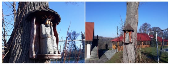The most common components of vanishing cultural heritage are shrines on trees (Figure 1), old barns (69%), wells (55%), and old root cellars (40%). The respondents pointed out scarecrows and watermills to a lesser extent (Table 1).