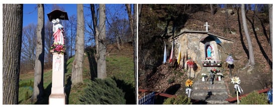 The respondents also talked about heritage sites in their surroundings. These were rare responses and usually concerned individual objects, such as an Orthodox church, manor, outdoor museum, pillar or brickwork shrines (Figure 2), handcar railway, granaries, castle ruins, old houses and buildings, and a sundial. The respondents most often pointed out specific places, buildings, structures, or objects that they believed to be worthy of restoration, conservation protection, and preservation for future generations. As a consequence, their contributions may provide insight into the local heritage that is yet to be noticed and remains at risk of destruction or oblivion.