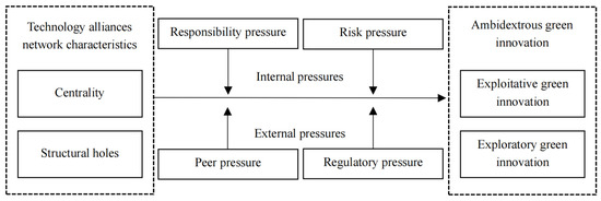 Wang, Z.; Sun, H.; Ding, C.; Xin, L.; Xia, X.; Gong, Y. Do Technology Alliance Network Characteristics Promote Ambidextrous Green Innovation? A Perspective from Internal and External Pressures of Firms in China. Sustainability 2023, 15, 3658. https://doi.org/10.3390/su15043658