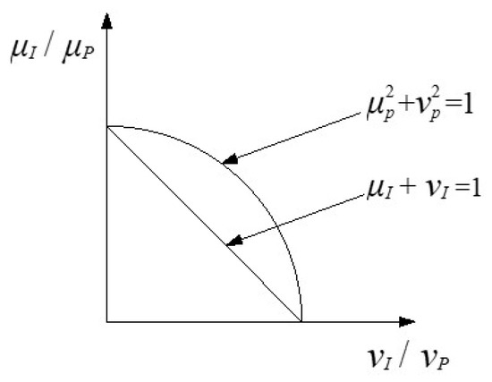 Pythagorean fuzzy sets (PFS) generalized by Yager [24] is a new method to deal with fuzzy problems. Its main contribution is to go beyond the limit that the sum of membership and no membership of fuzzy sets is less than 1 (see Figure 2). Compared with other fuzzy sets such as intuitionistic fuzzy sets, it can more fully and accurately represent uncertain information [25]. In view of this, this paper introduces a TOPSIS method based on PFS [26]. The framework of this PFS–TOPSIS method is illustrated (see Figure 3), which is used for mining method decision-making for the Suichang Gold Mine in Zhejiang Province, China, and has achieved good results in actual production.