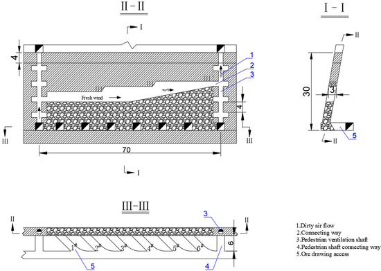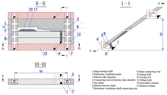 GUH faces problems of small production capacity, low mechanization, high labor intensity, large amount of preparation work, large amount of reserved space pillar and bottom pillar and low ore drawing efficiency of its two electric harrows (see Figure 7).