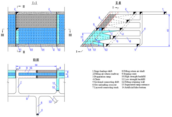 MUH adopts trackless mechanized equipment such as drilling jumbos and scrapers for production, which can realize strong mining, strong extraction and strong filling, with large production capacity (see Figure 6).