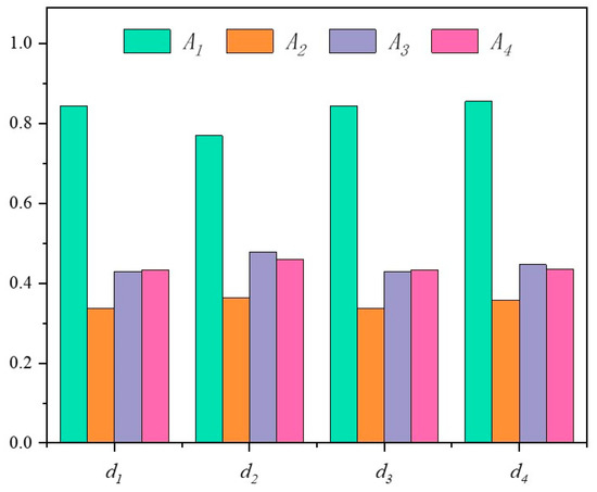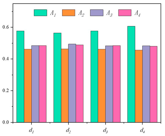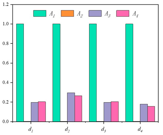 In view of this, the stability of the above results is analyzed through the four distance measures and three ranking methods mentioned above (see Figure 11, Figure 12 and Figure 13), as shown in Table 8 and Table 9, and the data in Figure 12 have been normalized.