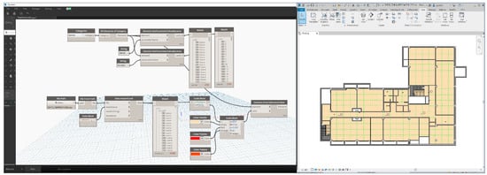 Dynamo™ Coding for a Case Study ((left): Dynamo™ Code, (right): Revit Model).