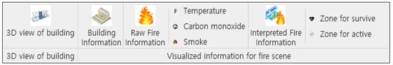 On the other hand, an appropriate tool is required for unforeseeable disaster situations [32,33,34] for fire rescuers. This management tool can provide meaningful information and expedite the right decision-making during an unexpected crisis. A fire may result in several unforeseeable situations, and the effectiveness of the current fire response depends on an individual rescuer’s capacity to act properly [35,36]. It has been confirmed that the key factors for a rescuer’s capacity include firefighters’ strength, physical ability, and judgment ability. Hence, ensuring reliability in fire disaster management is challenging. To address this, there is a requirement for an information-based fire-response system that can improve the reliability of the current approach.