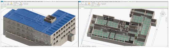 Screenshot of “3D view of the Building” ((left): Exterior View, (right): iIterior View).