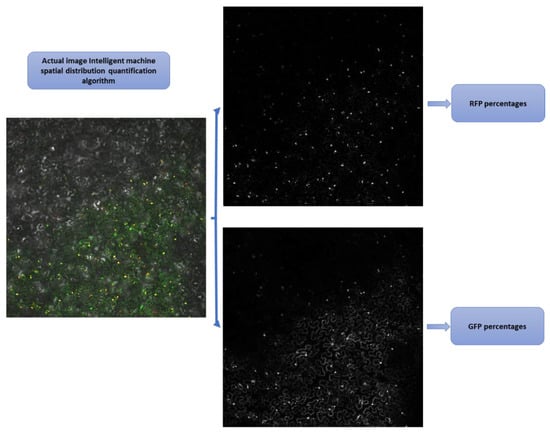 Utilizing visual quantification methods to quantify confocal images with naked human eyes is the standard approach to evaluate an experimental outcome by fluorescence quantification in images. Visual quantification of the spatial distribution method of pathogen silencing suppressor functions is remarkably reproducible []. This method provides fast and conventional measures. Hence, the main objective is to mechanize the visual quantification of the spatial distribution method described in []. An intelligent system that is supported by machine vision techniques was designed to achieve this objective. Fundamentally, this section starts with a brief description of the visual quantification of the spatial distribution method, then the intelligent system and the utilized machine vision techniques are discussed in detail.