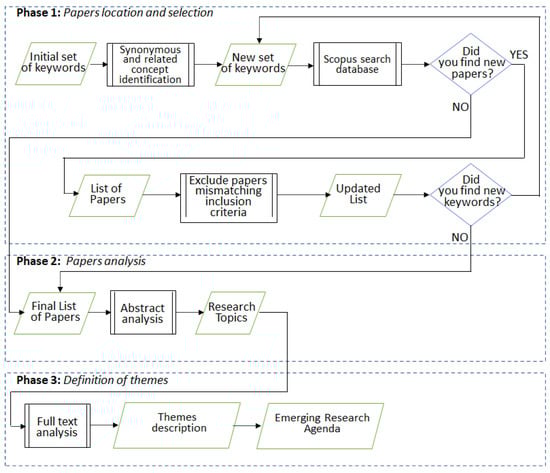 To identify elements characterizing food information value perception, we made the basic assumption that what is essential (valuable) for the consumer has been already addressed in the scientific literature. We adopted a methodology of SLR for inductive theory building proposed by Durach et al. [22]. According to the suggestions provided by Ammirato et al. [23], the steps of the methodology have been summarized into three main phases, namely paper location and selection, paper analysis and definition of themes. Figure 1 describes the research process we adopted.