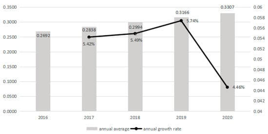 Based on the data on digital economy and rural revitalisation, we conducted an empirical study on rural construction in 31 provinces (municipalities directly under the central government and autonomous regions) in China (excluding Hong Kong, Macau, and Taiwan). The original data came from the “China Statistical Yearbook” and “Provincial and Municipal Statistical Yearbook for 2016–2020”, and the digital inclusion finance index came from “Peking University Digital Inclusion Finance Index (2016–2020)”.