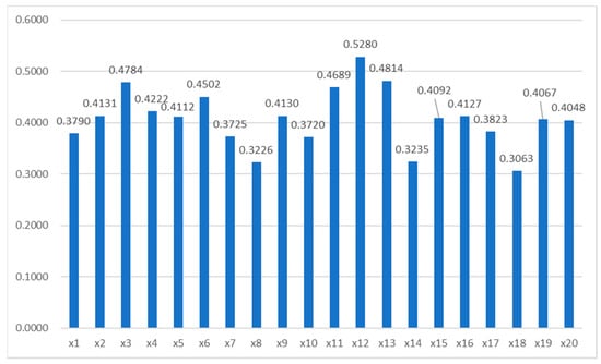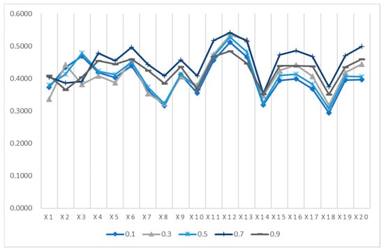 | X18 | (0.72,0.09,0.119) | (0.077,0.156,0.312) | (0.173,0.304,0.546) | (0.145,0.286,0.544) | (0.107,0.134,0.169) | (0.065,0.082,0.11) | (0.086,0.115,0.162) | (0.074,0.094,0.127) | (0.046,0.114,0.219) | (0.053,0.135,0.277) | (0.065,0.178,0.42) | (0.057,0.151,0.327) |